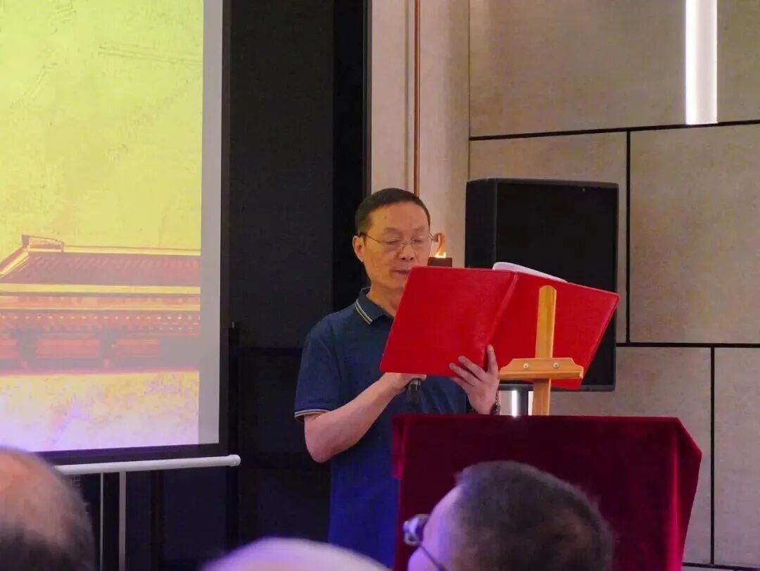 下午三时,大会在热烈庄重的氛围中拉开帷幕。筹备小组副组长吴国政作筹建工作报告,全面回顾分会筹备历程。自2025年上半年成立筹备小组以来,在浙江吴姓委员会指导下,严格按照《社会团体登记管理条例》,历时数月完成三大核心任务:一是走访杭州吴氏宗亲,建立宗亲信息数据库,核验创始会员身份,奠定规范化发展基础;二是起草章程草案,确立“弘扬祖德、敦亲睦族、造福宗亲、服务社会”的办会宗旨;三是组建专家智库,涵盖家谱研究、产业协作、公益慈善等领域,形成“三位一体”组织架构。这一系列扎实举措,为分会的规范化运作奠定坚实基础。