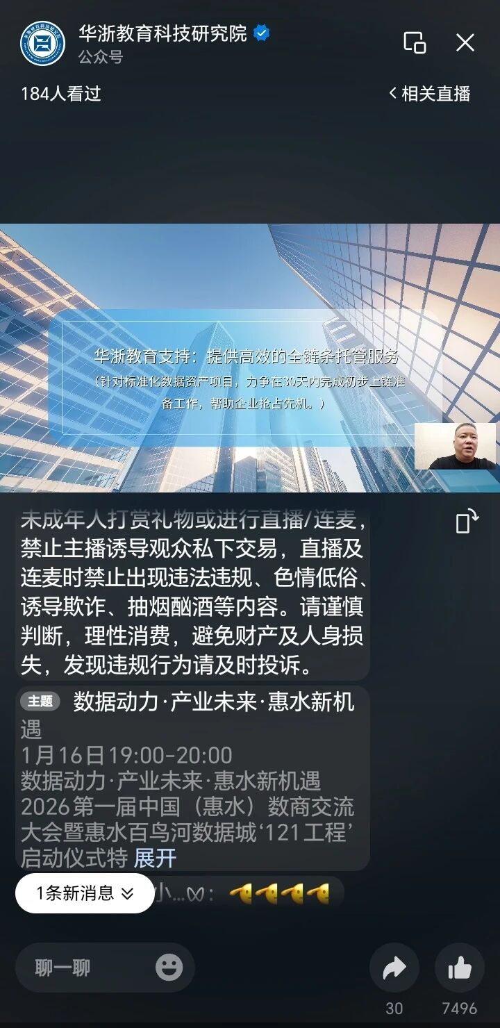 惠水有约,数聚生金。1月16日,由华浙教育科技研究院主办的“2026年第一届中国(惠水)数商交流大会暨惠水百鸟河数据城121工程启动仪式”云端推介会圆满举行。本次会议吸引了来自全国各地的数百名企业代表、行业专家及政策研究者在线参与,围绕国家数据要素市场化战略展开深度解读与研讨,系统梳理了中小企业数据资产化的实施路径,为即将于1月20日至21日在贵州惠水举办的线下大会进行了全面预热。