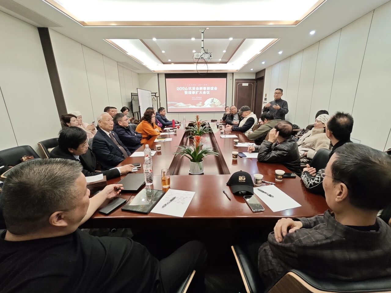 腊月西湖,暗香浮荡;清梅初绽,悄递春声。1月28日,杭州植物园·园外园内,疏影斜横,梅韵缭绕,一场以“叙亲情、传文化、话未来”为轴的新春雅集,在幽芳与温情之间徐徐启幕。杭州吴氏宗亲代表应约而至,聚于园景雅苑,共赴2026年杭吴会新春联谊会暨理事扩大会议,于血脉亲情与千年文脉的交融之中,回望家族悠远传承,共绘新时代文化长卷。
