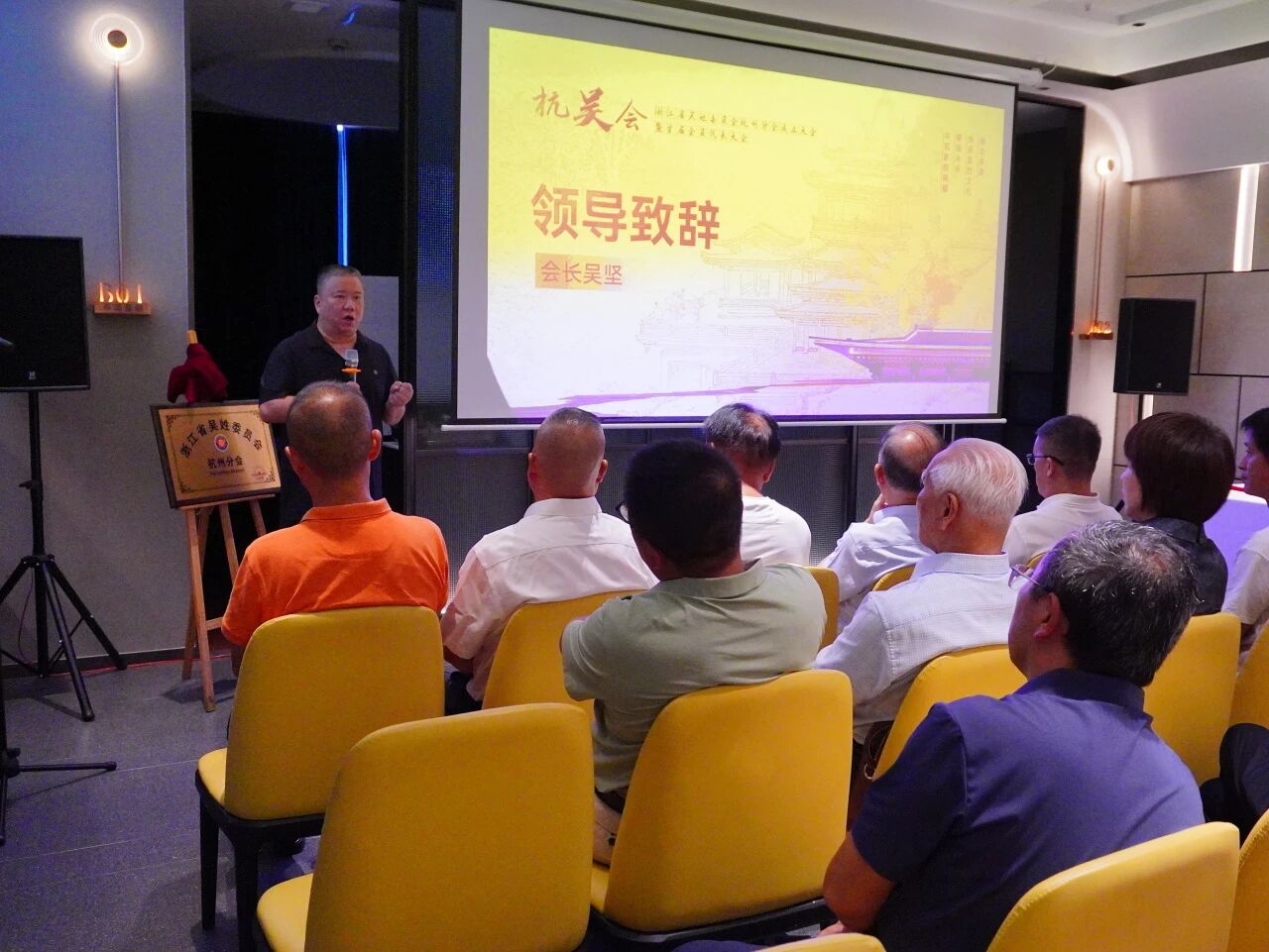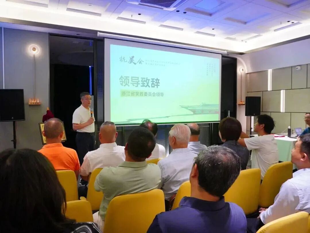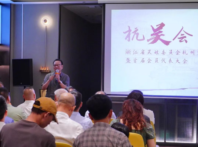 浙江吴姓委员会会长吴友水代表总会致贺词。他指出:“姓氏文化是中华文明的精神基因库,吴姓‘至德让贤、开拓进取、诗礼传家、兼济天下’的千年精神图谱,亟待构建系统化传承体系。杭州分会的成立,标志着吴姓文化在省会城市首次搭建起立体化传承平台,对推动姓氏文化的创造性转化与创新性发展具有里程碑意义。”