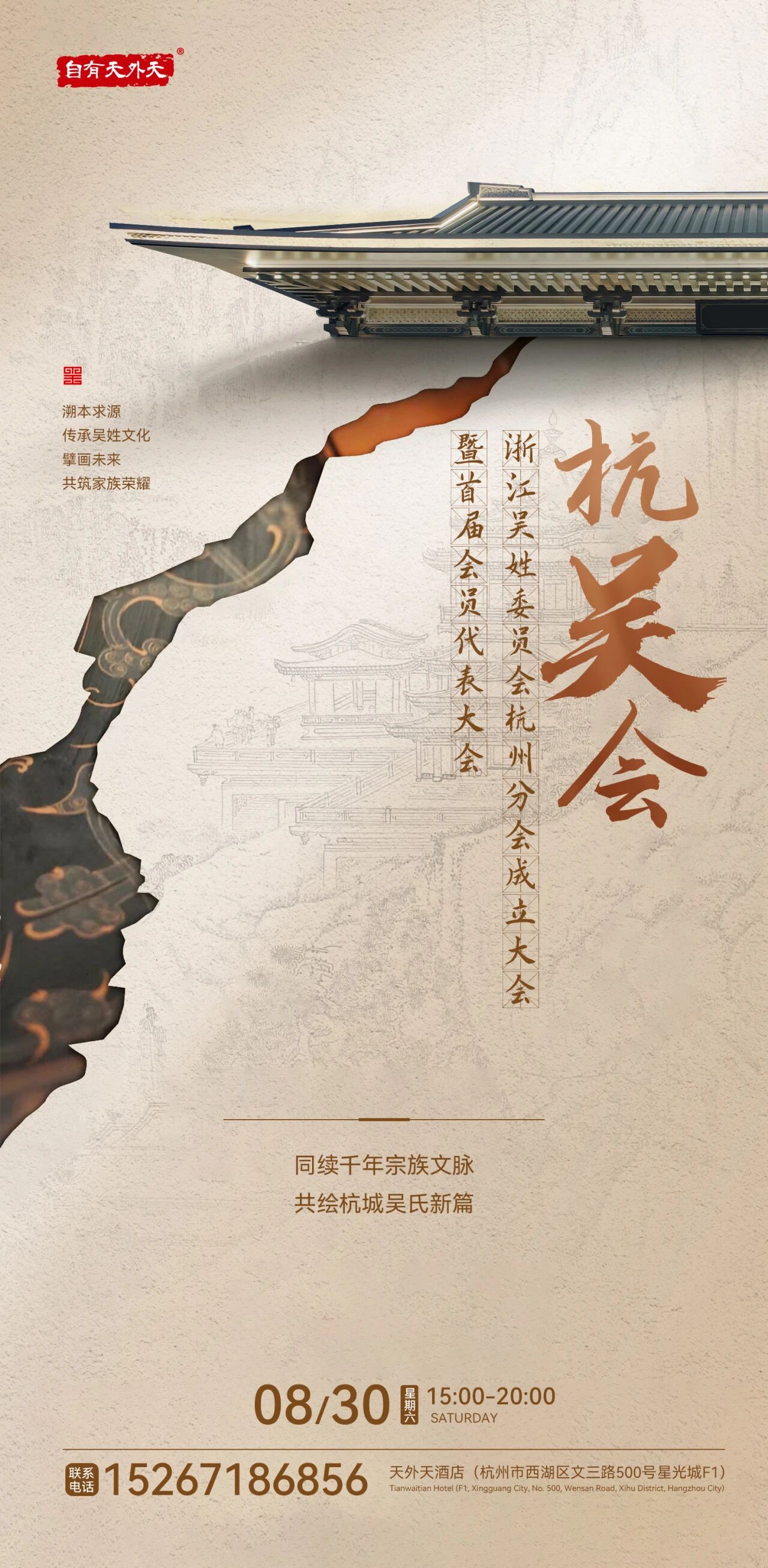 西子湖畔,荷香未散秋意至;钱塘江潮,奔涌新声启华章。8月30日,杭州天外天酒店内华灯璀璨、高朋满座,浙江吴姓委员会杭州分会成立大会暨首届会员代表大会在此隆重举行。来自政商学研界的70余位吴氏宗亲代表及特邀嘉宾齐聚一堂,以文化为魂,以发展为志,共同见证吴氏精神在之江大地绽放新时代华彩。